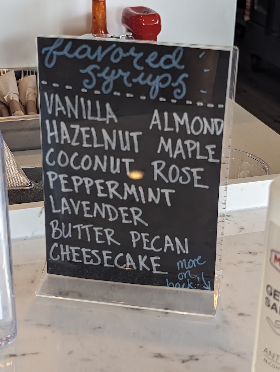 For those craving a hot drink, the menu includes a variety of comforting choices like Macchiato, Chai Latte, and London Fog Tea Latte, while the Hot Chocolate and Espresso provide the perfect warm pick-me-up. If you prefer something cold, the Iced Americano, Iced Matcha Latte, and Iced Chai Latte are refreshing options.